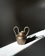 This budvase is inspired by ancient Greek amphorae. It has tall, curved handles and has been glazed in metallic dirty bronze. Measures 7.5cm tall by 7.5cm wide.