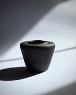 This bud vase has a simplistic shouldered form and has been left unglazed. Measures 5.5cm tall by 7cm wide.